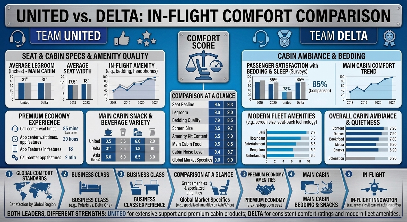 Overall, when comparing Who is Better, United or Delta? for in-flight comfort, Delta often wins for consistent cabin design and entertainment systems, while United competes strongly with spacious Economy Plus seating and premium Polaris business-class cabins. ✈️